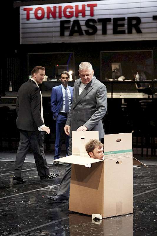 Auf diese Weise beginnt die grandiose Inszenierung von Johannes Lepper (er zeichnet auch für Videokonzept und Musik) mit einem sensationellen realzeitlich-analogen Travelling von der konkreten bernischen Zuschauerwirklichkeit hinüber in die abgehobene globale Medienwirklichkeit. Die Vermischung aller Dinge ist das Thema der Aufführung, die ihrerseits vermischt ist mit dem Stück "Network" von Lee Hall, das seinerseits vermischt ist mit dem Film von Paddy Chayewsky. Der Hintersinn des Hintersinnss evoziert, wohl ohne dass es den Beteiligten bewusst ist, die im Barock vielgeliebte Struktur des Spiegelkabinetts. Das zeigt, dass die Menschen in Endzeiten, wo Krieg, Vertreibung, Dürre, Pest und Not ihr ganzes Fühlen und Denken in Anspruch nahmen, stets von der Sein-Schein-Problematik und der Frage nach der Wahrheit bewegt wurden, heute wie gestern und ehegestern.