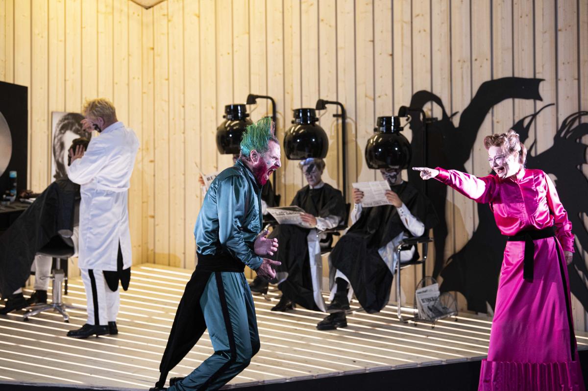 Für das Laienauge bedeutet die Spielanlage in erster Linie Verrätselung. Da ist Text (projiziert und gesprochen), da ist Musik (perkussiv ab Band und vokal live vom 26-köpfigen Theaterchor [rhythmisch gestossene A-a-a-Laute]), da ist Videoanimation mit insektenhaftem, gruselig haarigem Schattenspiel, da sind farbige Perücken, grosse Gebärden und grellbunte Kostüme, da ist Geschrei und Emotion, da sind Requisiten und Lichter, da ist eine Drehbühne mit Parallelhandlungen (die eine Handlung stets als grotesk verlangsamtes, stummes Bild), und da ist das Ganze – akribisch genau durchkomponiert wie eine Schönbergpartitur ... Doch wer die Ausbildung nicht hat, sitzt gleich ratlos vor der "Catabasis"-Aufführung wie 1924 das Publikum beim "Ballet Mécanique" der Dadaisten.