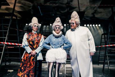 So dürfen nun Jannik Süselbeck, Claudia Hübschmann, Jens Koch und Gunnar Schmidt nacheinander ein bisschen Galilei spielen, daneben aber auch ein bisschen Frau Sarti, Galileis Haushälterin, den Dogen von Venedig, den Grossherzog von Florenz etc. pp., ungeachtet ihres Alters, ihres Geschlechts und ihres Talents. Die Einheitlichkeit der klassenlosen und genderneutralen Gesellschaft auf der Bühne wird hergestellt durch Einheitlichkeit der Maske und Standardisierung des Spiels. Damit können keine individuellen Vorzüge mehr in Erscheinung treten. Alle sind gleich viel wert, was leider bezogen aufs Sprecherische nicht gilt. Alle dürfen aber gleich viel spielen. Wir sind am Ende der Unterscheidung von Haupt- und Nebenrollen. Hochgehalten wird die "Teamleistung".