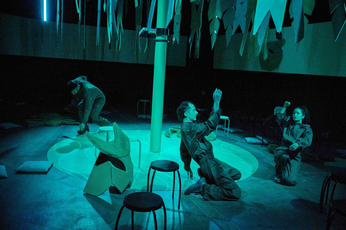 Durch ihre assoziative Inkonsistenz gleicht die Vorstellung eher einer Trump-Rede mit einer Wolke von Gebrabbel als einem Stück. Und wie der amerikanische Präsident, der am Tag der Uraufführung in Davos auftritt, bringt auch sie Werte und Haltungen. Nur eben die, welche heute noch in Köniz verlangt sind: Antikolonialismus, Antikapitalismus, Antimachismus. Damit können Schauspieler und Regie machen, was sie wollen und können, und das tun Lou Haltinner, Claudius Körber und Ali Kandas jetzt auch unter der Leitung von Miriam Ibrahim mit zeitgeistiger Gelenkigkeit.