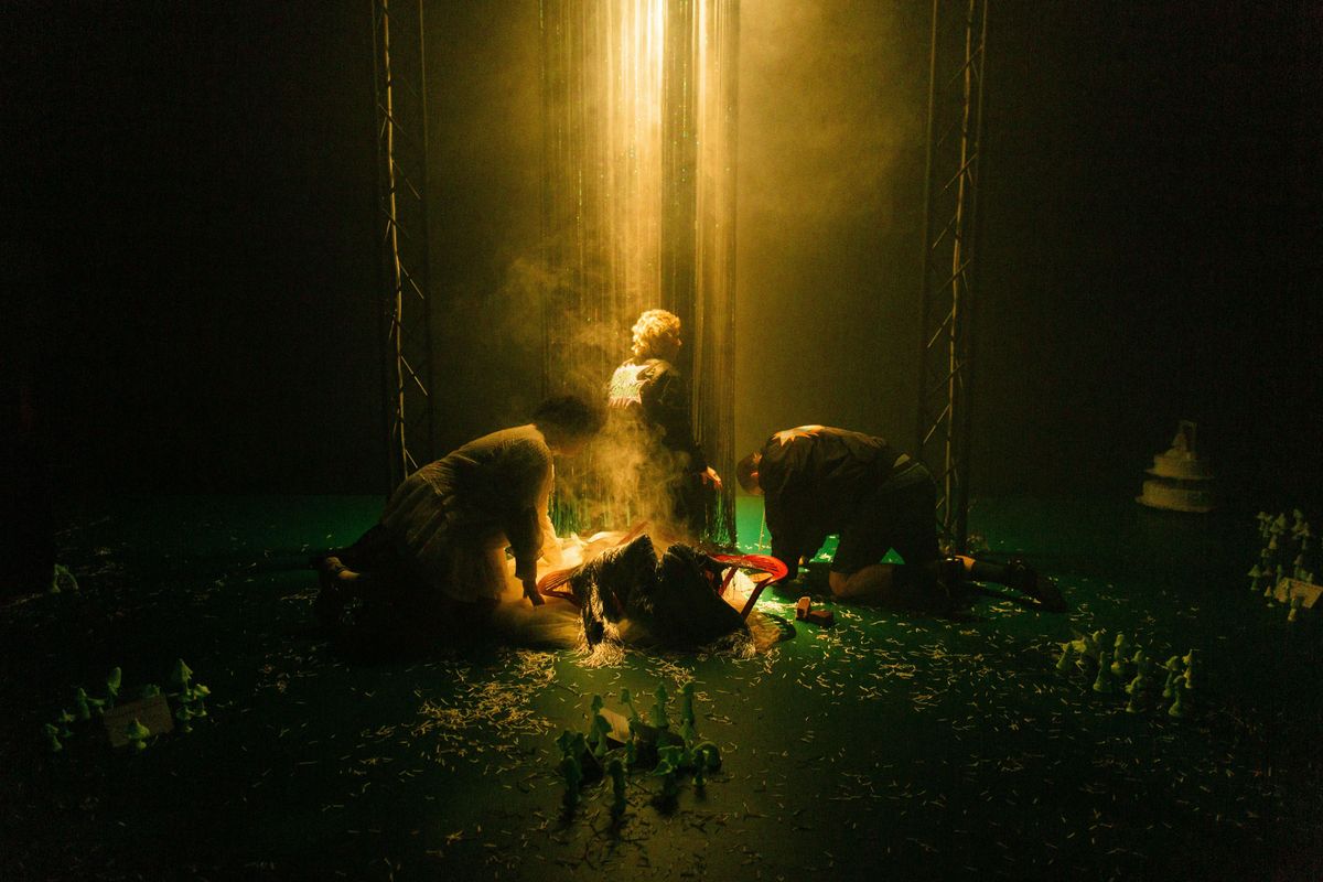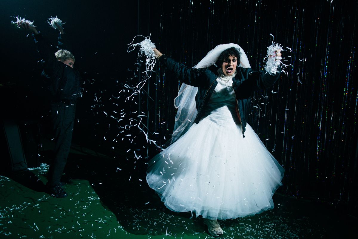 Analog zu diesem Vorkommnis führt jetzt die Inszenierung das papierene Organ in den Schredder und exorzisiert damit alle Formen von Übergriffigkeit.