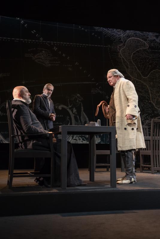 Mehrere Züge prägen sich in dieser denkwürdigen Aufführung ein. Zunächst einmal die Subtilität der Wiedergabe. Hochwälder verwendet eine heute fast vergessene Zahl von dynamischen Charakteren, d.h. Personen, die sich im Laufe der Handlung verändern. Denn der begnadete Arrangeur des Gedankenschachs schafft mit jedem Zug eine neue Situation, bis es am Ende heisst: Schach und matt. Diese Entwicklung zeichnet Günter Baumann als Provinzial des Jesuitenstaats mit glaubhaftem, fein dosiertem Spiel nach. Und der Mann für die robusten Charaktere hat im "heiligen Experiment" eine Ausstrahlung von feiner Geistigkeit gefunden, die ihn in einem neuen Licht erscheinen lässt. Oder dann Michael Lucke als Inspektor der spanischen Krone, als Darsteller und Sprecher untadelig, nein: bemerkenswert. Wie er sich am Ende der Untersuchung auf seinem Stuhl entkräftet nach hinten wirft und die Perücke abzieht: "Ich kann dieses Urteil nicht vollstrecken!", um dann doch im Interesse der sog. höheren Staatsräson die dreissig Urteile "zur Abschreckung" zu unterschreiben, wobei er bei jeder Bewegung mit der Feder wiederholt: "Tod! Tod! Tod! Tod! ...", da realisiert sich im Schauspiel von Biel-Solothurn politisches Theater vom feinsten (die beiden letzten Wörter unterstrichen).
